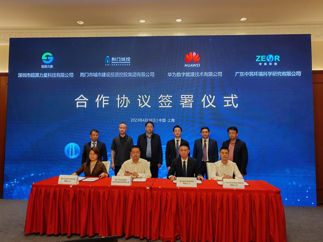在各方主要負(fù)責(zé)人見證下,荊門城控集團(tuán)與華為數(shù)字能源技術(shù)有限公司、深圳市超算力量科技有限公司、廣東中筑環(huán)境科學(xué)研究有限公司簽訂了《華為超級充電樁》四方框架合作協(xié)議。