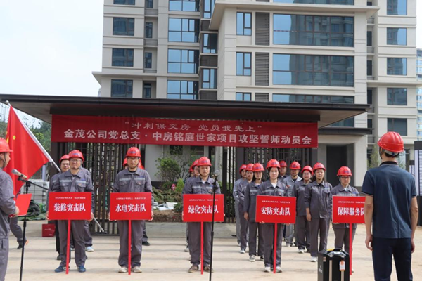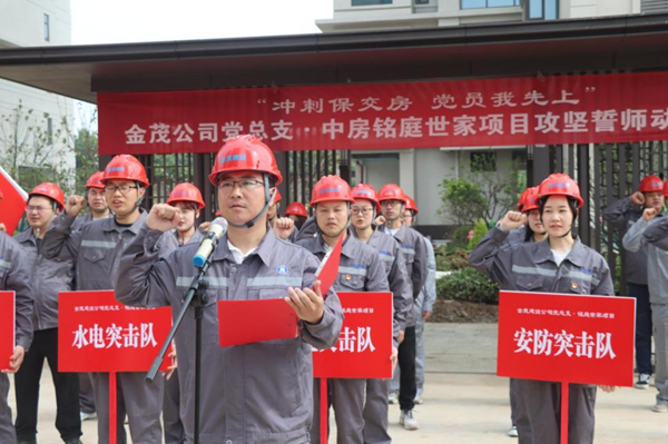“在中房?銘庭世家項(xiàng)目收官攻堅(jiān)之際,我代表公司全體青年黨員宣誓:令行禁止、服從安排;行動自覺、堅(jiān)守崗位;放棄休息、快趕進(jìn)度;奮戰(zhàn)半月,堅(jiān)決交房!”這是近日金茂建設(shè)公司黨總支在中房?銘庭世家項(xiàng)目召開“沖刺保交房 黨員我先上”攻堅(jiān)誓師動員會上的一幕。