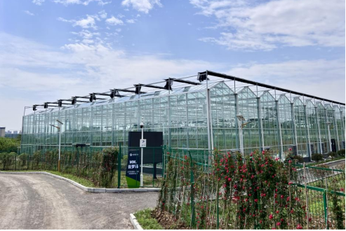 玻璃溫室內(nèi)部采用多種智能化、自動化設(shè)備,自動化灌溉、水肥一體機、天窗、風(fēng)機、水簾通風(fēng)降溫設(shè)備,實現(xiàn)對溫室內(nèi)溫度、濕度、光照等精準化控制,通過在作物種植系統(tǒng)的土壤墑情傳感器和電磁閥,實現(xiàn)灌溉、水肥的精細化控制。