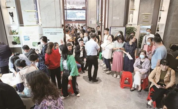 6月3日,同樣在位于漳河新區(qū)天鵝小區(qū)東側(cè)的中房?銘庭世家營銷中心門前,中房?鑫鼎學(xué)府開盤活動(dòng)雙輪舉辦,同樣吸引眾多市民前來打探。