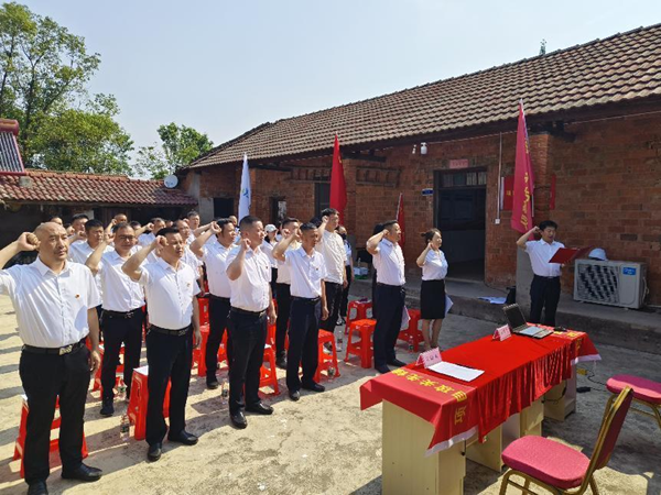 驕陽似火,初心如磐。40名黨員干部黨徽在胸,著裝齊整,表情肅穆,面對鮮紅的黨旗,鄭重舉起右手,重溫入黨誓詞,回顧入黨宣誓時的莊嚴(yán)承諾和堅定信念。