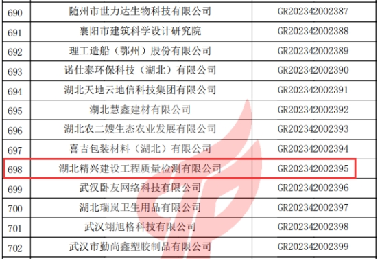 近日,建勝公司所屬精興公司榮登湖北高新技術(shù)企業(yè)榜(證書編號GR202342002395),標(biāo)志著其在科技創(chuàng)新、技術(shù)研發(fā)等方面邁上了新臺階。
