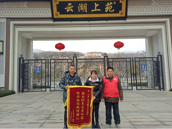 “這是一份遲來的感謝,也算圓了我一樁心事,再次感謝你們!”近日,城控地產(chǎn)公司所屬中岸運(yùn)營公司的云湖上苑項(xiàng)目10號樓業(yè)主王先生將一面印著“服務(wù)優(yōu)良態(tài)度和藹,信譽(yù)極佳誠信待人”的錦旗送到該小區(qū)物業(yè)服務(wù)中心工作人員手中,向物業(yè)服務(wù)人員真心表達(dá)感謝。