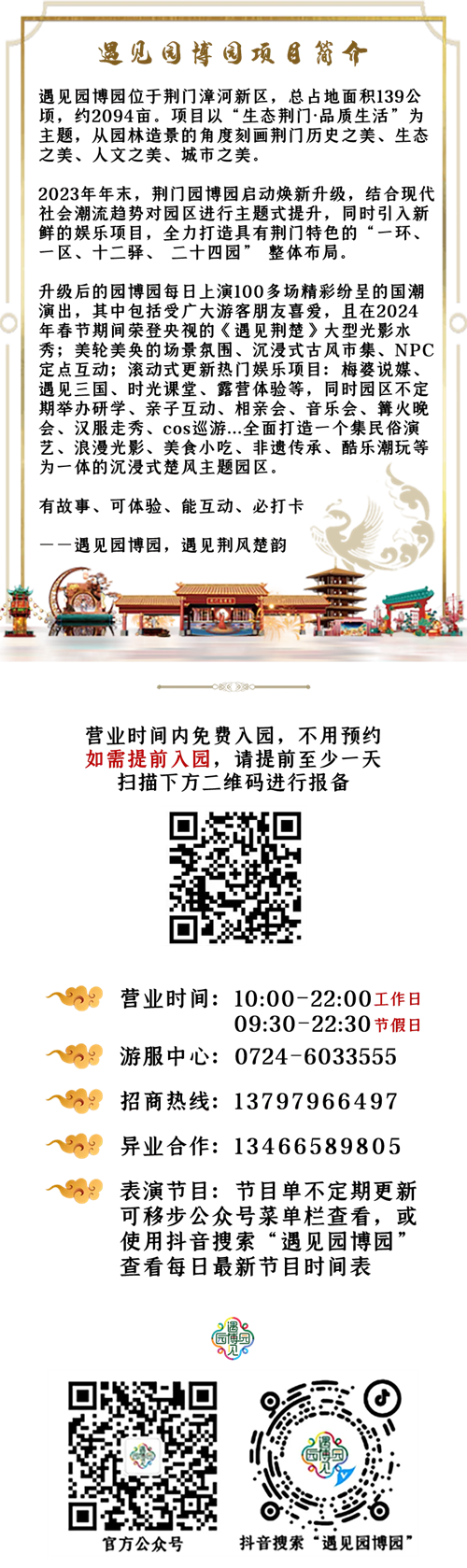 相信在未來,遇見園博園將在五一期間繼續(xù)舉辦草坪音樂節(jié)、萌寵樂園、露營帳篷以及獨具民族特色的非遺打鐵花、攔門酒、竹竿舞、國風(fēng)大典婚禮秀等特色活動,為廣大游客帶來更多驚喜與歡樂,為傳承和弘揚荊楚文化作出更大的貢獻(xiàn)。