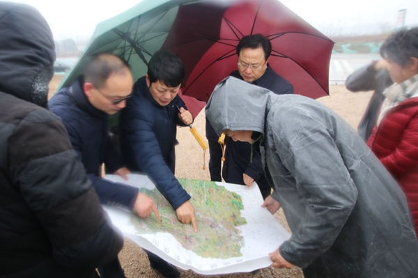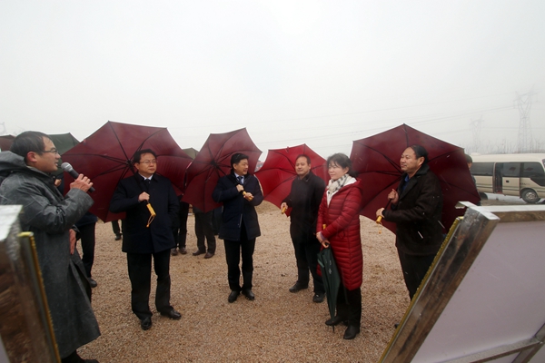 圖為市委副書記、代市長孫兵(左二)調(diào)研荊門保稅物流中心(B型)項(xiàng)目現(xiàn)場