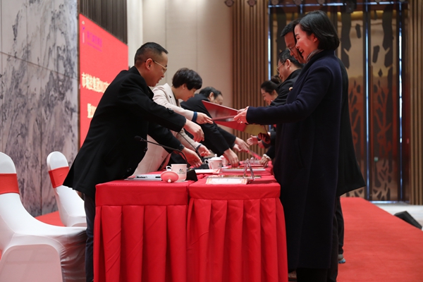 圖為集團領導班子為先進集體頒發(fā)獎牌