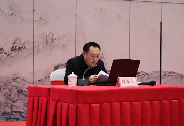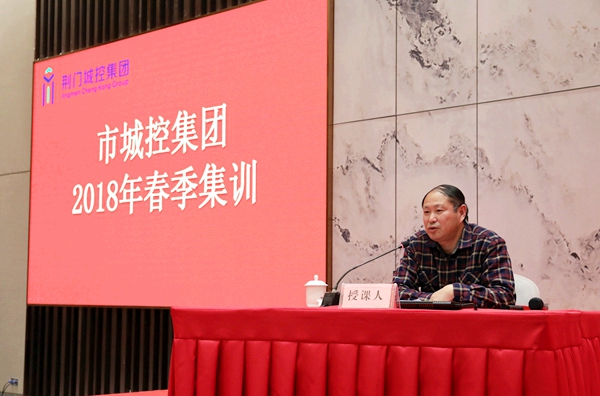 圖為城控集團黨委委員、副總經(jīng)理江泉作資產(chǎn)經(jīng)營的理論與實踐專題講課