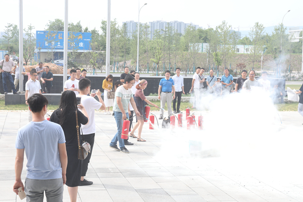 圖為集團(tuán)職工在生態(tài)科技城北廣場進(jìn)行消防演習(xí)