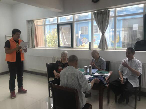 志愿者與老人切磋歌藝,老人一首,志愿者一首,其樂(lè)融融