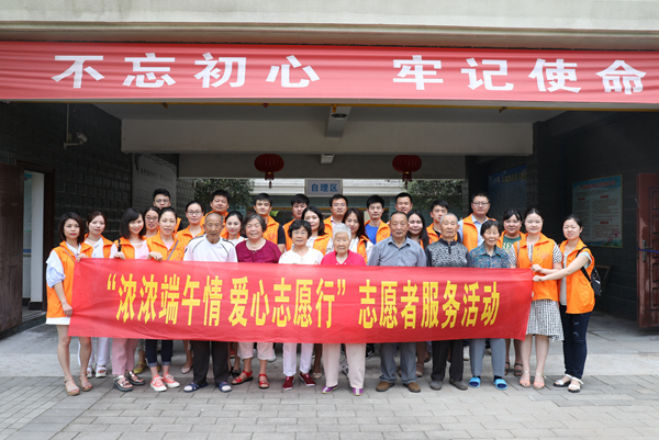 志愿者與老人一起合影