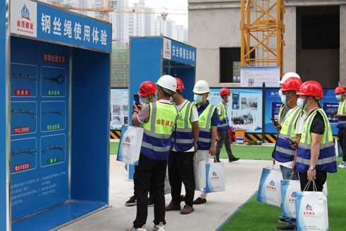 本次活動(dòng)旨在進(jìn)一步推進(jìn)我市建筑安全、質(zhì)量標(biāo)準(zhǔn)化工作,主題為“遵守安全生產(chǎn)法,當(dāng)好第一責(zé)任人”。觀摩現(xiàn)場(chǎng),金茂公司通過(guò)安排專(zhuān)人講解、布置圖片展板、設(shè)置體驗(yàn)區(qū)域等方式,全面詳細(xì)展現(xiàn)了中房?銘庭世家項(xiàng)目在質(zhì)量管理、安全施工、智慧文明工地、黨建引領(lǐng)等方面的經(jīng)驗(yàn)和成果,毫無(wú)保留分享了定制化安全防護(hù)通道、屋面工藝流程、剪力墻混凝土技術(shù)要點(diǎn)、內(nèi)墻抹灰工藝流程及門(mén)窗洞口預(yù)制件規(guī)范等方面的經(jīng)驗(yàn)和做法,贏得觀摩人員的一致點(diǎn)贊。