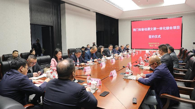 近日,荊門知音動漫文旅一體化綜合投資項目在九派通苑松濤樓一號會議室舉行簽約儀式,副市長劉國芳出席簽約儀式并講話,市政府國資委黨委書記、主任唐興杰主持,市交通局、市文旅局、市招商局、漳河新區(qū)有關(guān)負(fù)責(zé)人參加會議。