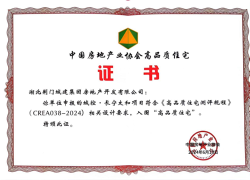 近日,中國房地產(chǎn)業(yè)協(xié)會主辦的2024年中國高品質(zhì)住宅發(fā)展論壇在山東煙臺開幕。本次論壇揭曉了中國高品質(zhì)住宅首批項(xiàng)目測評成果,荊門城控地產(chǎn)旗下“銘庭世家”“長寧太和”“秀江南”3個(gè)項(xiàng)目成功入圍中國“高品質(zhì)住宅”。
