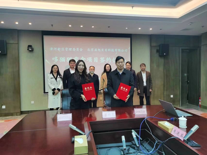 1月31日下午,漳河新區(qū)管委會(huì)與北京啟旭貝貝科技有限公司在生態(tài)科技城D106會(huì)議室舉行哆貓貓零食項(xiàng)目簽約儀式。新區(qū)黨工委書記陶然出席簽約儀式并講話,新區(qū)黨工委副書記、管委會(huì)副主任魯雷主持,新區(qū)黨工委委員、管委會(huì)副主任程樹(shù)平代表新區(qū)管委會(huì)簽約,荊門城控集團(tuán)總經(jīng)理程雄及生投公司負(fù)責(zé)人見(jiàn)證簽約。