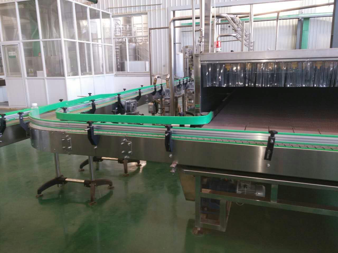 下圖為大連海升輸送彎道及超潔凈灌裝間現場(chǎng)安裝圖