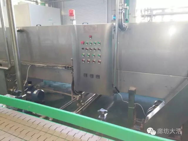 由輸送帶傳送過(guò)來(lái)的包裝瓶在噴淋冷卻機入口處排瓶,順序進(jìn)入噴淋冷卻機,首先到達第一溫區,在第一溫區保溫73攝氏度時(shí)間為3分鐘,隨后順序進(jìn)入第二和第三溫區逐漸升溫,時(shí)間為12分鐘,此溫區循環(huán)水循環(huán),外接冷水塔,第四溫區降溫到30攝氏度-40攝氏度,此溫區用脫鹽水冷卻,系統補水時(shí)多余水進(jìn)入上一溫區。